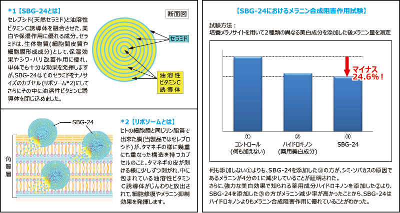多くの女性がスキンケアに求める効果、それは「美白」と「保湿」。その2大欲求を叶えるリッチな美容液です。細胞や肌の源であるアミノ酸をベースに、水溶性と油溶性のダブルビタミンC誘導体(安定型VC)やナノサイズのセラミドリポソーム(SBG-24 *1)などが、日焼けによるシミ・ソバカス・くすみを改善。その他植物性プラセンタエキスや生薬、肌の弾力を蘇らせる浸透型ヒアルロン酸など、2大欲求を叶える贅沢成分をたっぷり配合。分子量の小さい成分のみで構成し、浸透率にこだわりました。イオン化処方ですので、イオン導入用美容液として全てのメーカーの機器にお使い頂けます。